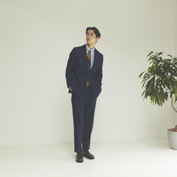 クラシコテーパードのスリーピース仕様。ベストのオプションで着こなし幅を広げる。ベストはドレスアップの必須アイテム、秋の着こなしから、クールビズまで大活躍です。