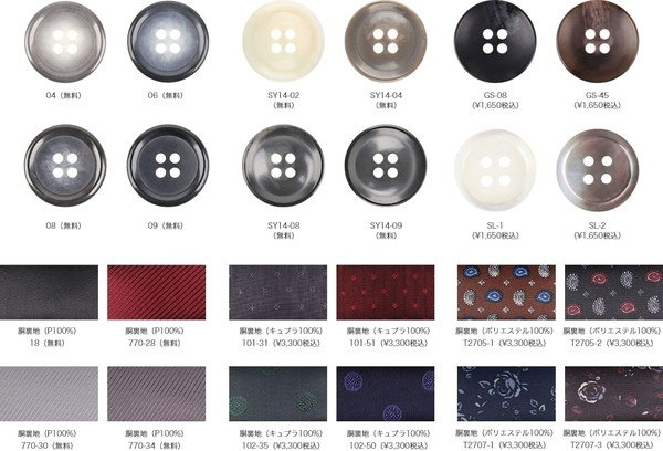 有料と無料オプションがあると思いますが、予算にあわせて選びましょう。釦は見える部分でスーツの印象を変えます。裏地はスーツの良さを引き立てます。