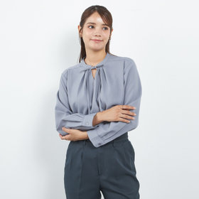胸元のリボンがアクセントになるブラウスです。