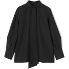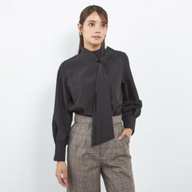 ボリュームのあるリボンで顔周りが華やかに見えるブラウスです。