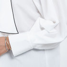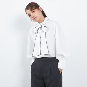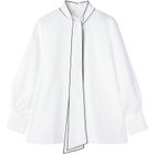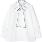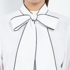 ボリュームのあるリボンで顔周りが華やかに見えるブラウスです。