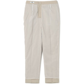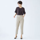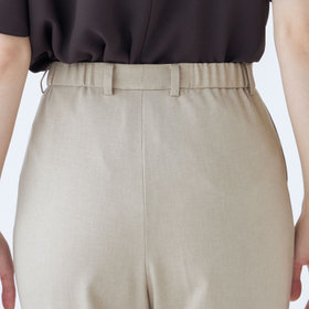 ウォッシャブル仕様のセンタープレスパンツです。ゴムギャザー仕様は、トレンドだけではなく、ウエストを締め付けないストレスフリーがポイント。