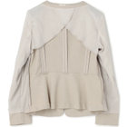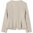ホック留めのキーカラージャケット。後ろペプラムが大人らしい上品さに可愛げをプラス。
