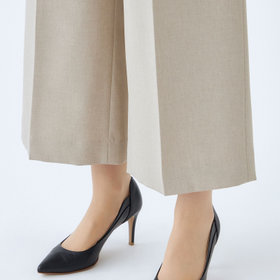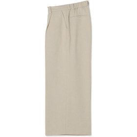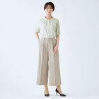 足首丈が軽やかで清楚な印象のセンタープレスガウチョパンツ。後ろウエストゴム仕様のジャストウエストデザイン。