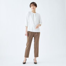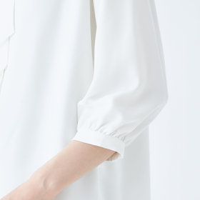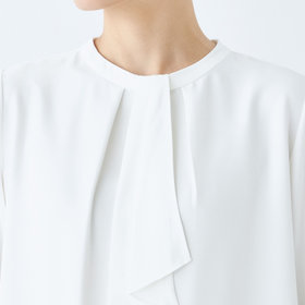 タイは内側に折り返しできシンプルなハイネックとして2WAY着用可能。タイは内側に折り返しできシンプルなハイネックとして2WAY着用可能。バングルなどのアクセサリーで楽しめます。1枚着からジャケットインまでデイリーにお使いいただけるアイテムです。