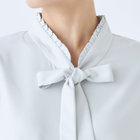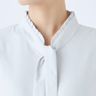 衿端に施したタイニーフリルがクールなシルエットに優しさをプラス。