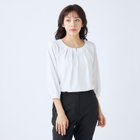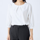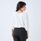 表地はストレッチジョーゼット。メタルホック明き仕様、袖口ゴム仕様でブラウジング可能。