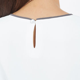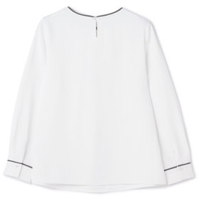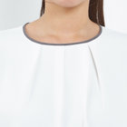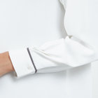 衿ぐりやカフスの配色もポイントです。長袖・スリット明き仕様で快適に着用可能。