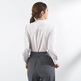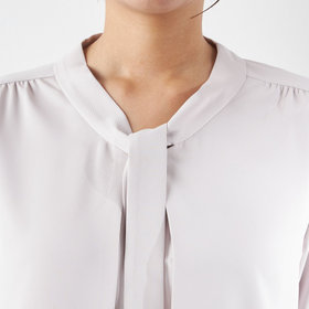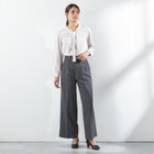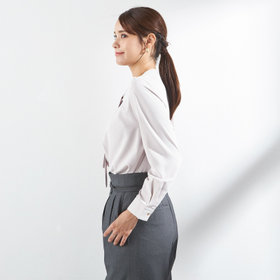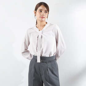 やわらかな落ち感と上品な光沢感が魅力のリボンタイブラウス。