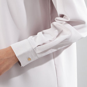 フロントはすっきりとした比翼仕立てで、ジャケットインにも映えるデザイン。