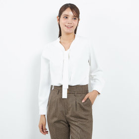 やわらかな落ち感と上品な光沢感が魅力のリボンタイブラウス。