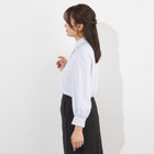 ループで簡単に取り外しができるフリルタイが首元にニュアンスをプラス。