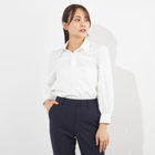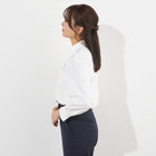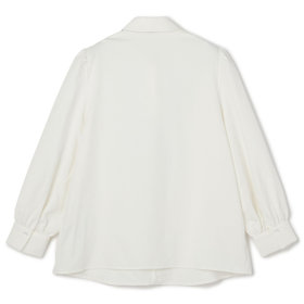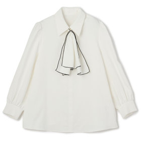 ループで簡単に取り外しができるフリルタイが首元にニュアンスをプラス。