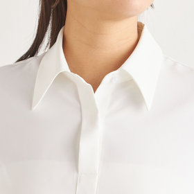 着脱可能なフロントフリルタイシャツのボタンを留めてから着用。