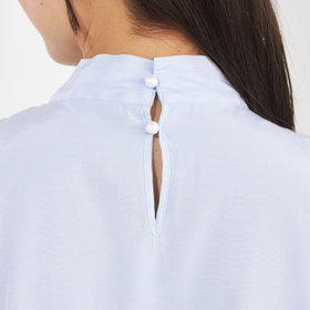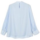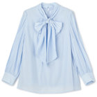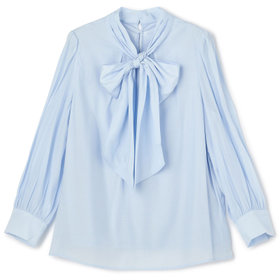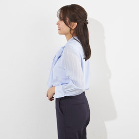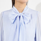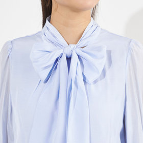 上品なツヤのある素材に華やかなリボンが印象のブラウス。