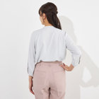 衿元のメタルボタンがデザインのアクセントとなった上品な印象のプルオーバー。