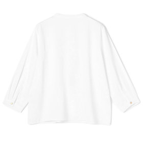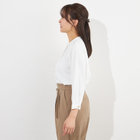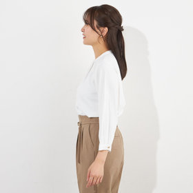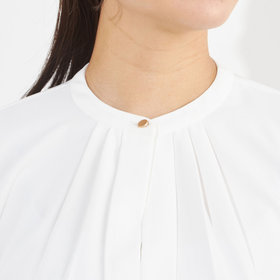 衿元のメタルボタンがデザインのアクセントとなった上品な印象のプルオーバー。