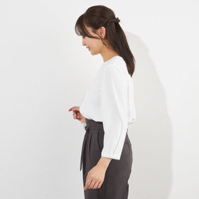 襟ぐりに配色をあしらったシンプルなプルオーバー。