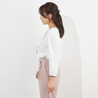 【SILVER LINE/7分袖】配色クルーネックプルオーバー/ホワイト+ブラック/「ウォッシャブル」「ストレッチ」「防シワ」「UV加工」「静電気防止」