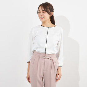 襟ぐりに配色をあしらったシンプルなプルオーバー。