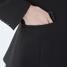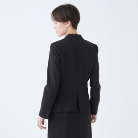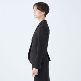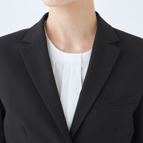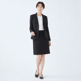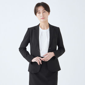 就職活動やビジネスシーンに最適なレディース2釦ジャケット。シンプルで上品なブラックのベーシックなデザイン。共生地のパンツやスカートと組み合わせることで、様々なシーンや好みに合わせたスーツスタイルが可能。