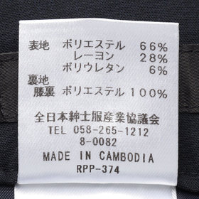 素材(表地):ポリエステル66%/レーヨン28%/ポリウレタン6%・(裏地):ポリエステル100%・【着用シーズン:年間】