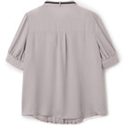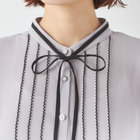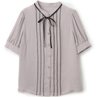 バンドカラー×細リボンタイ×バイカラーステッチが特徴の、存在感たっぷりな半袖ブラウスです。