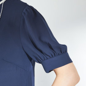控えめなボリューム感のパフスリーブが、ふんわりとした女性らしいシルエットを演出。