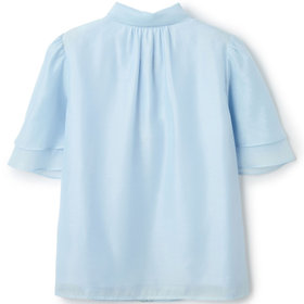 華やかで上品なボウタイと襟のデザインはそのままに、袖を繊細な二重フレアスリーブへアレンジ。