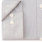 SKINNY(スキニー)シャツは、衿型・カフス型・前立巾にもこだわりコンパクトにすることでより見た目のシャープ感を視覚的にも演出しました。また下前立てに芯地を入れる事により衿立ちをキレイに見せる仕様もポイントです。