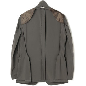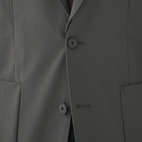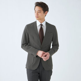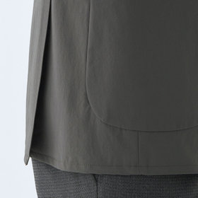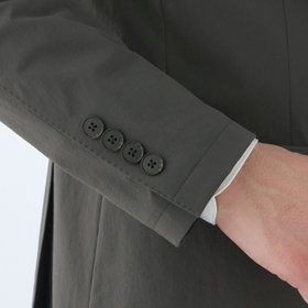 デタッチャブル仕様でテーラードスタイルとノーカラースタイルで着用可能。ストレッチ素材で撥水加工を施してあり、雨の日でも安心して着用できます。家庭用洗濯機でも洗濯可能で、清潔にお召しいただけます。