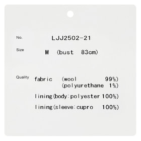 素材(表地)ウール99%/ポリウレタン1%/(裏地)ポリエステル100%/(袖裏)キュプラ100%・【着用シーズン:秋冬】