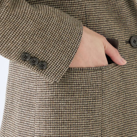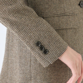 原料調達、反毛、紡績、織布、整理全ての工程を日本国内でおこない、尾州産地でつくられたリサイクルウールRE:NEWOOLを使用。付属や釦・裏地にもサステナブルな素材を使用。