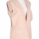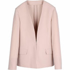ノーカラーホック留めノーベントのシンプルなデザイン。裏地なし&共生地見返しで高級感がありながら軽やかな仕立て