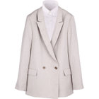 ノーベントのボクシーシルエット。しっかりしたテーラード感にウエストのくびれが無いゆるっとしたシルエットだからこそ叶う華奢見え&今らしい抜け感