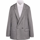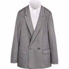 ノーベントのボクシーシルエット。しっかりしたテーラード感にウエストのくびれが無いゆるっとしたシルエットだからこそ叶う華奢見え&今らしい抜け感