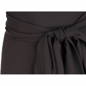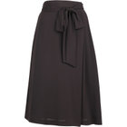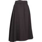 ミモレ丈のアシメプリーツフレアスカート。透け防止の総裏仕様。ウエストうしろゴムシャーリング仕様。共生地のサッシュベルト付。