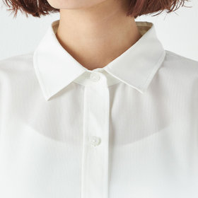 襟抜きしやすい、少し前下がりの小さめレギュラーカラー。