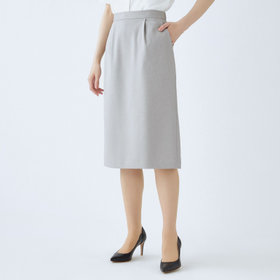 ウエストゴムのセミフレアスカートはジャケットとリンクしたペプラムデザイン。