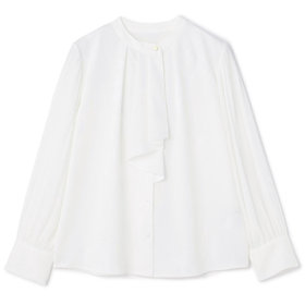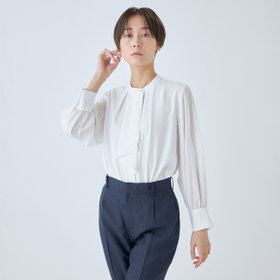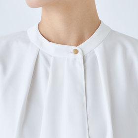 シャープ目のタイに袖のプリーツと衿のゴールド釦が上品さをUP。