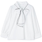 前後を逆に着てバックリボンにすると、黒のパイピングが目立って後ろ姿が華やかに。