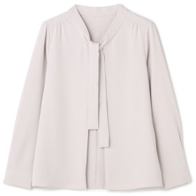 やわらかな落ち感と上品な光沢感が魅力のリボンタイブラウス。