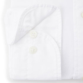 CLASSICO TAPEREDシャツは肩幅はシャツの肩が落ちないように狭く設定し肩を内側に入れ、袖山を高くし、肩のラインに沿うように、緩やかな曲線ヨ-クにしました。