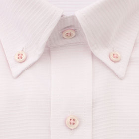 一部の商品では、高級シャツで使われる天然貝をくりぬいた釦を使用しています。天然貝釦とは白蝶貝、黒蝶貝、などの貝殻を原料とし、一個ずつ手作業で貝をくりぬいて作っています。天然貝は形状(凹凸感)・風合い・色・が一個ずつ異なり、同じものが存在しません。※形状(凹凸感)等により、釦の一部が「欠け」「割れ」ているように見えますが、天然貝釦の特徴になります。