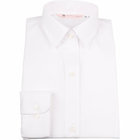 【Point 2】 レディースでは初めてのワンピースカラーデザインを採用! 第一釦を閉めれば、レギュラーカラーとして、また開ければで衿立ちが綺麗なスキッパーカラーに。1枚で2通りの着こなしができ、お客様の着用シーンに合わせてコーディネートの提案ができます。