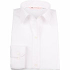 【Point 1】 従来の白無地定番シャツでもおなじみのコスメリリースを使用。 化粧品汚れが落ちやすい防汚加工がプラスされているのも、就活女子には嬉しいポイント。