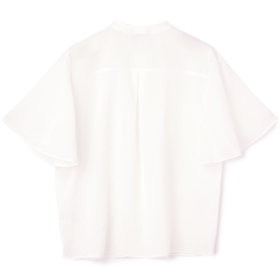 機能性と環境配慮を兼ね備えた、快適な着心地のバンドカラーブラウス。