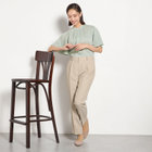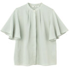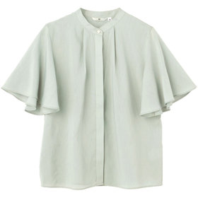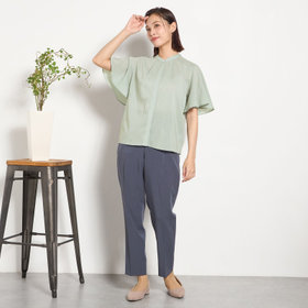 機能性と環境配慮を兼ね備えた、快適な着心地のバンドカラーブラウス。