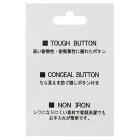※クリーニング店での洗濯の場合⇒クリーニング店により異なりますが、通常の洗い方ではランドリー洗浄後、濡れた状態でワイシャツプレス機で仕上げる店舗が多い為、釦の破損や生地の縮みによるサイズの変化がおこる可能性がございます。