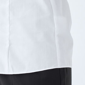 ☆フリル・・・首元から胸元にかけてギャザー分量を調整し、ボリューム感が出すぎず、ジャケットへの収まりが絶妙!